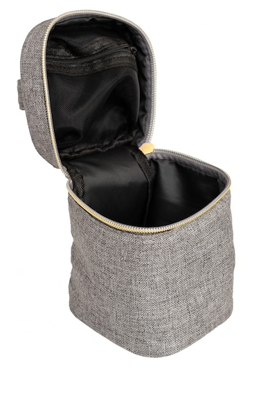 - Colore : Grigio con cerniera dorata.