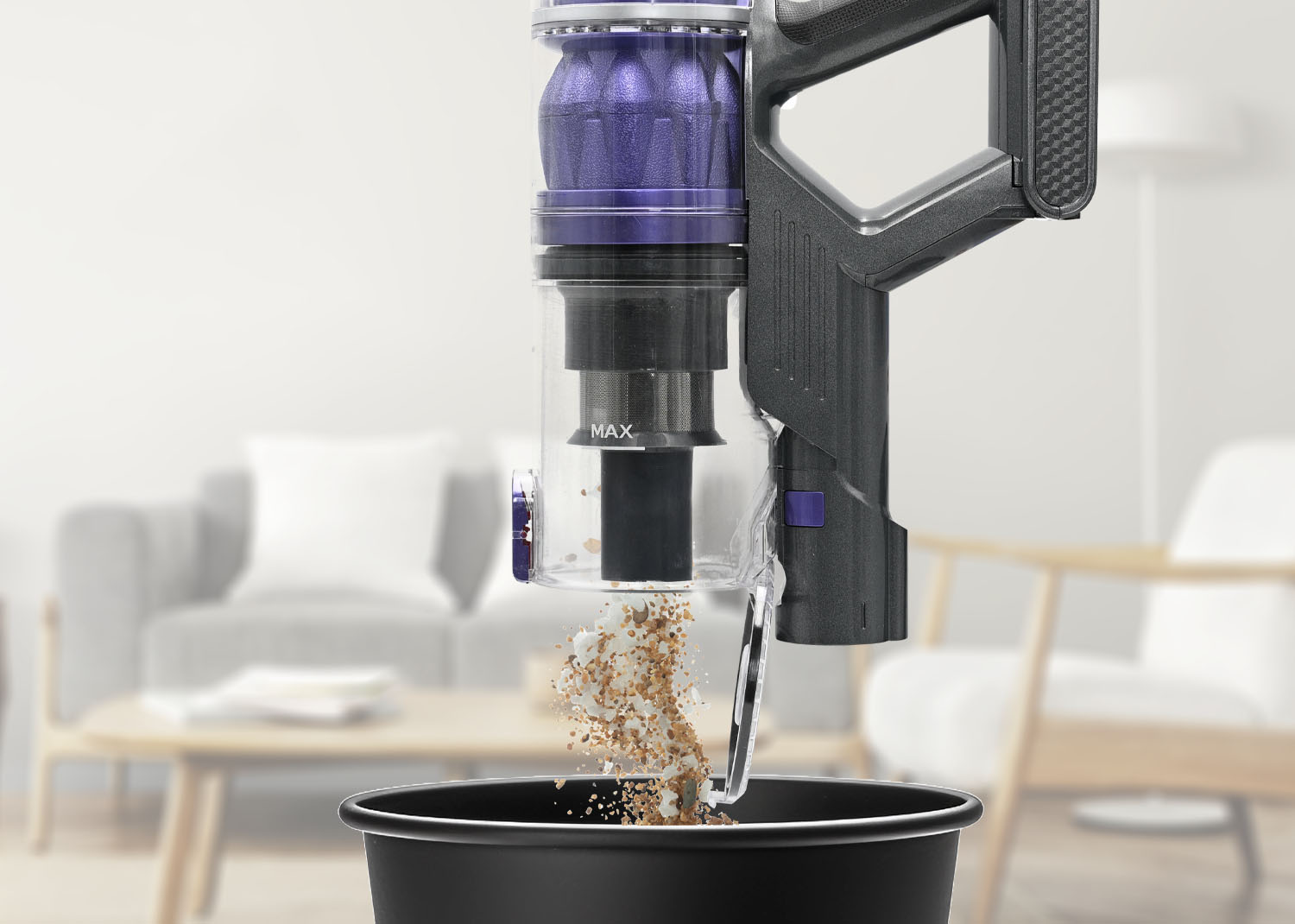 La tecnologia ciclonica contribuisce a mantenere costante la forza di aspirazione separando polvere e aria, mentre il sistema di filtrazione con filtro EPA e pre-filtro in metallo aiuta a trattenere le particelle di polvere più fini.
