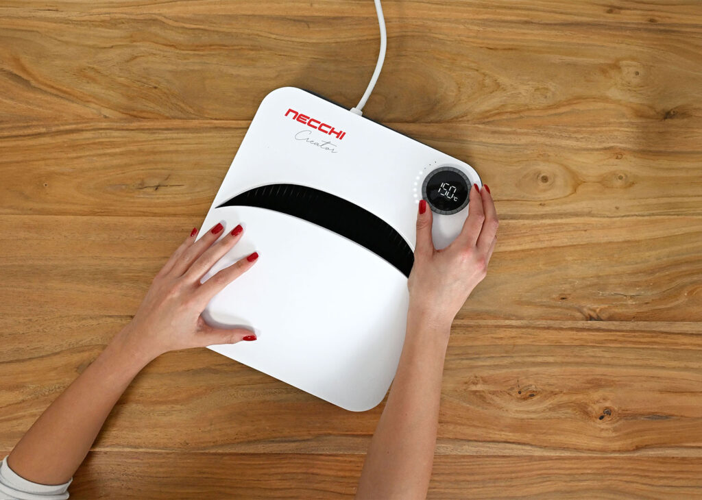 La Necchi FlatPress Creator Maxi 30,48 cm × 24,4 cm offre prestazioni affidabili e costanti per tessuti di medie dimensioni. La regolazione precisa della temperatura, da 40°C a 205°C, permette di lavorare su diversi materiali garantendo sempre risultati uniformi. Il tempo di pressione è completamente regolabile, consentendo di gestire ogni applicazione termica con precisione. La superficie compatta ma generosa rende la pressa ideale per personalizzazioni, trasferimenti termoadesivi, patch e progetti creativi di medie dimensioni. La struttura solida e il funzionamento manuale assicurano un controllo totale durante ogni fase del lavoro, combinando praticità, versatilità e precisione in un unico strumento.