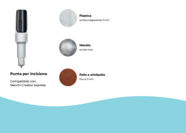 La Necchi Lama per incisioni è lo strumento perfetto per trasformare materiali rigidi in pezzi personalizzati di alta qualità. Consente incisioni precise e resistenti su cuoio, acrilico, alluminio, plastica e altri materiali — ideale per targhe, medagliette, gioielli, decorazioni e progetti artigianali. Con un click cambi strumento e passi da incisione a taglio o altre funzioni: praticità e versatilità a portata di mano.