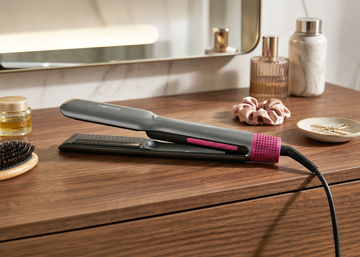 Lo styler lisciante Necchi con tecnologia AI è progettato per offrire uno styling intelligente, rapido e controllato, adattandosi alle esigenze dei capelli in modo più preciso rispetto agli strumenti tradizionali.