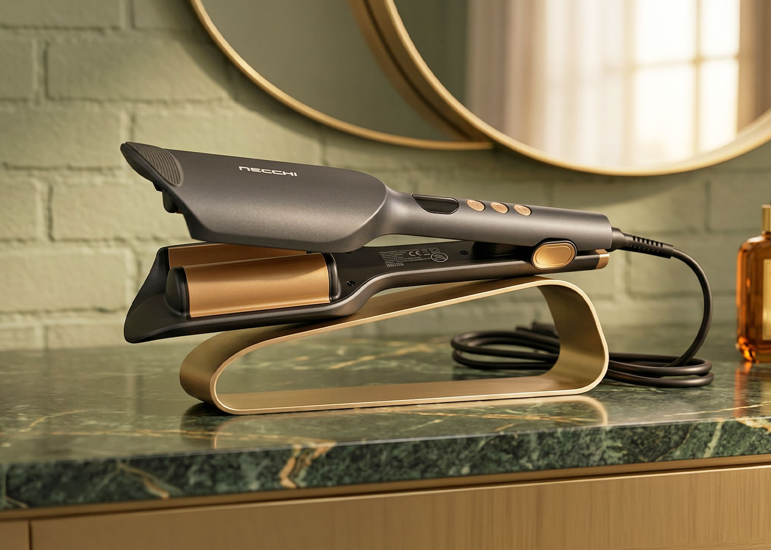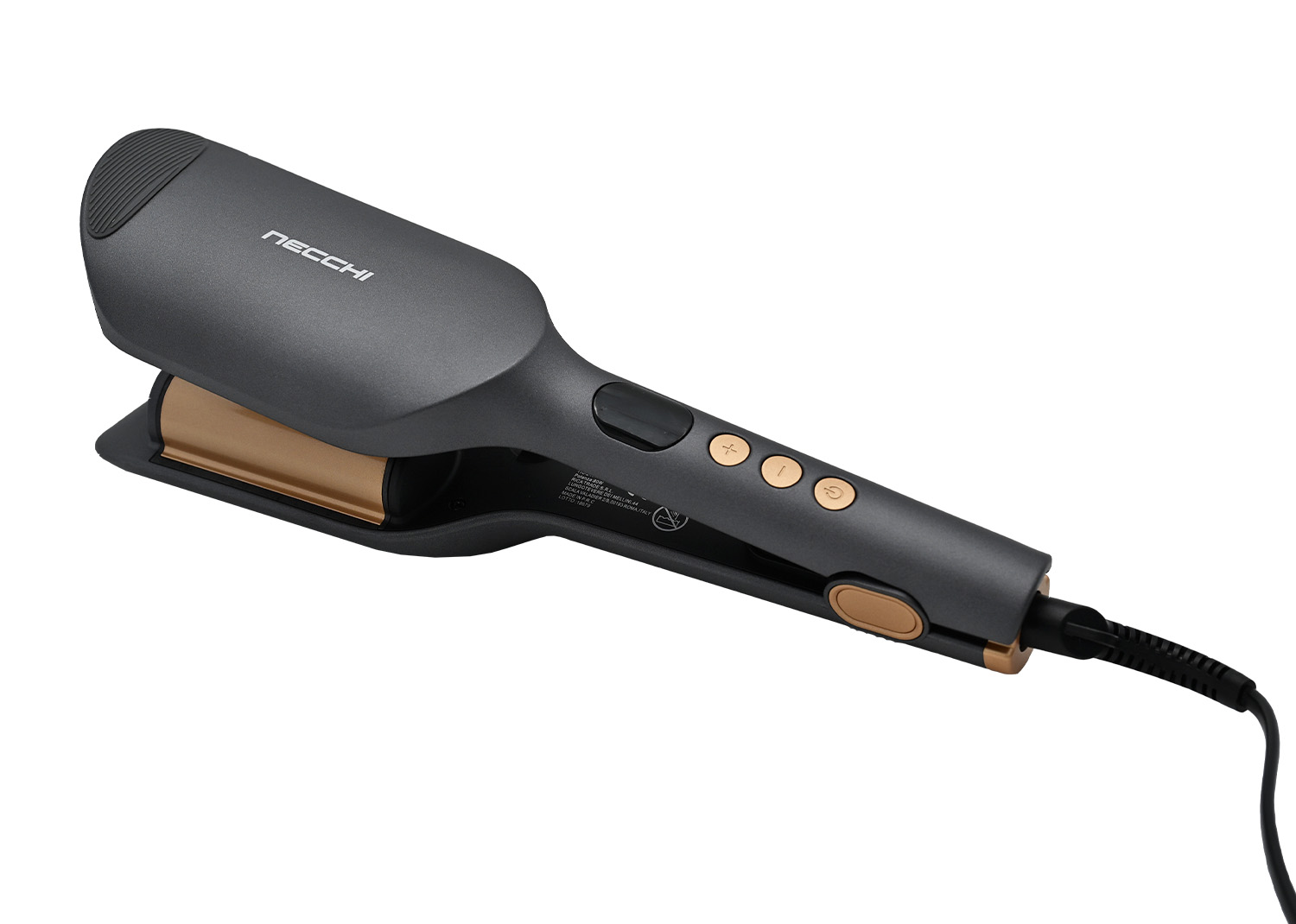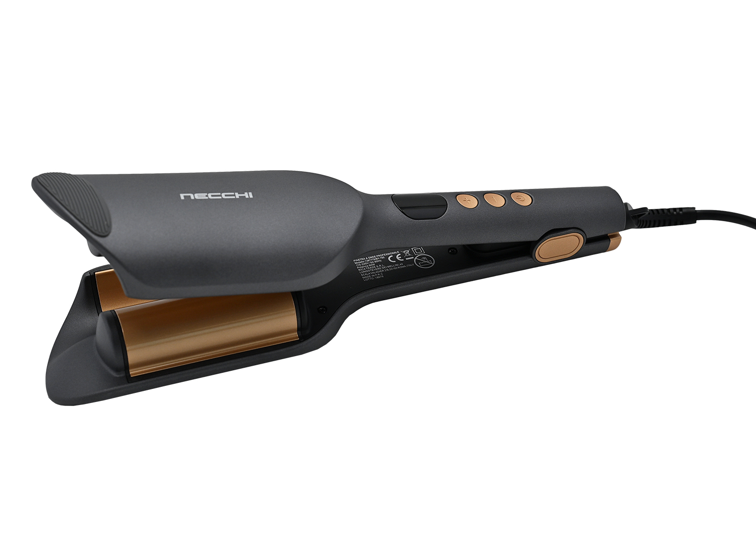Ottieni onde morbide e naturali con la piastra professionale Necchi effetto beach waves. Le piastre ondulate in ceramica garantiscono una distribuzione uniforme del calore, proteggendo i capelli.