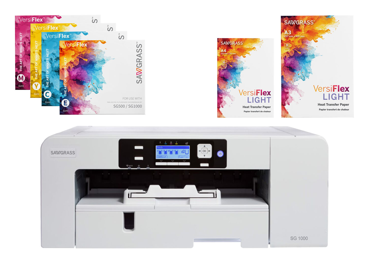 Sawgrass Stampante Sublimatica SG1000 A3 con 4 Cartucce 31ml inchiostri VersiFlex + Carta Versiflex Light 50pz A3 e Carta Versiflex Light 50pz A4
