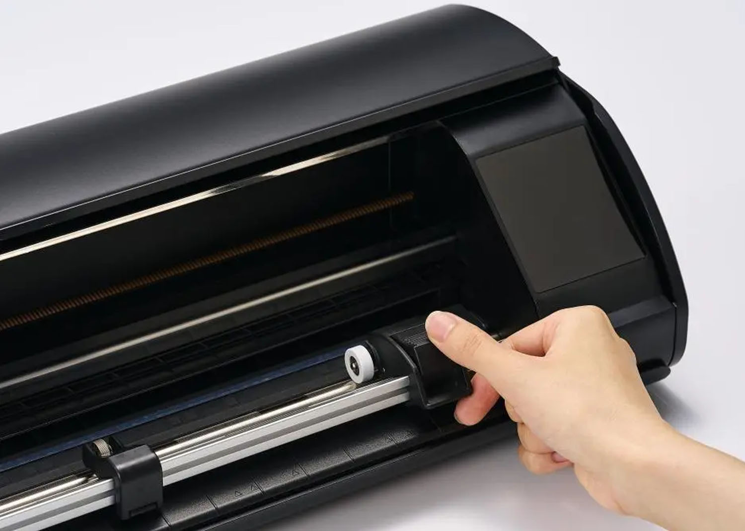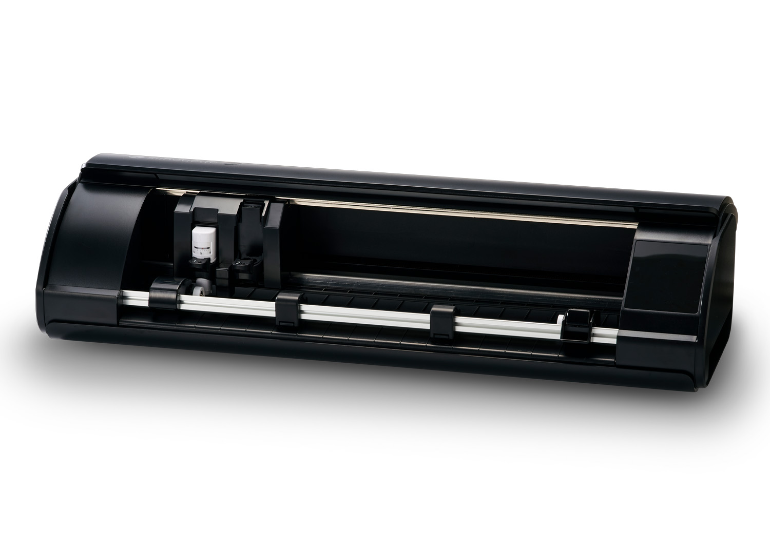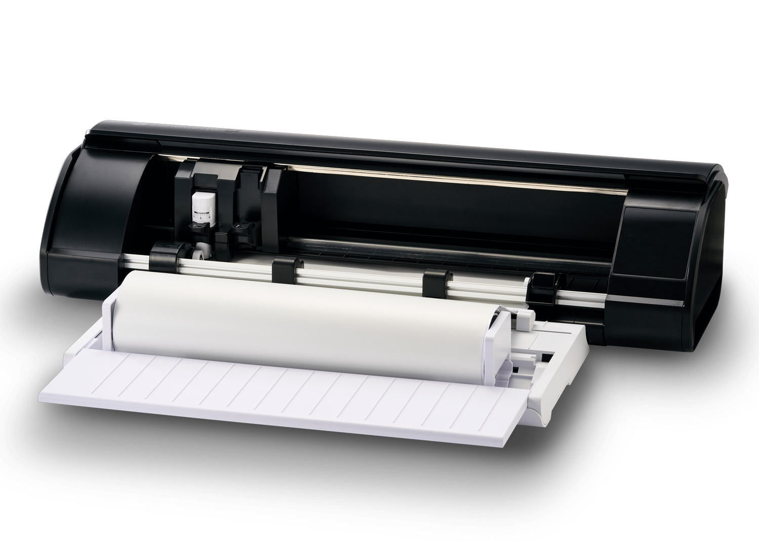 Gestisce facilmente carta, cartoncino, vinile, termovinile, stencil e materiali fino a 3 mm di spessore. L’attacco rinforzato per l’alimentatore a rulli e il supporto per rullo (accessori opzionali) permettono di lavorare rotoli più lunghi in modo stabile e continuo.
