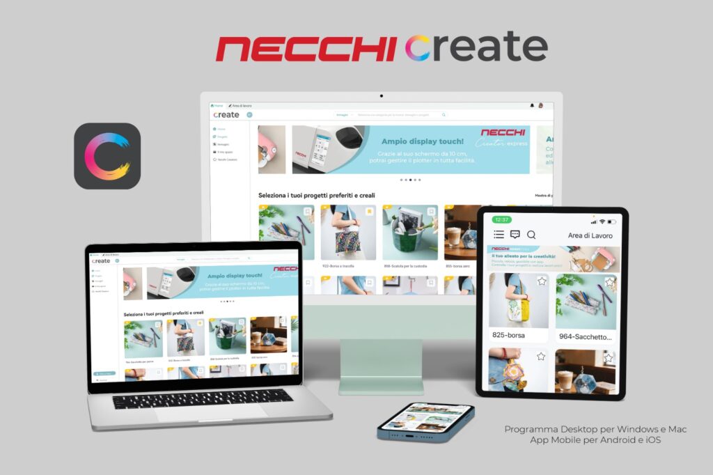 Necchi Create è il software Necchi pensato per rendere il taglio creativo con i plotter Necchi Creator Express e Necchi Sweet Mini immediato, intuitivo e accessibile a tutti.